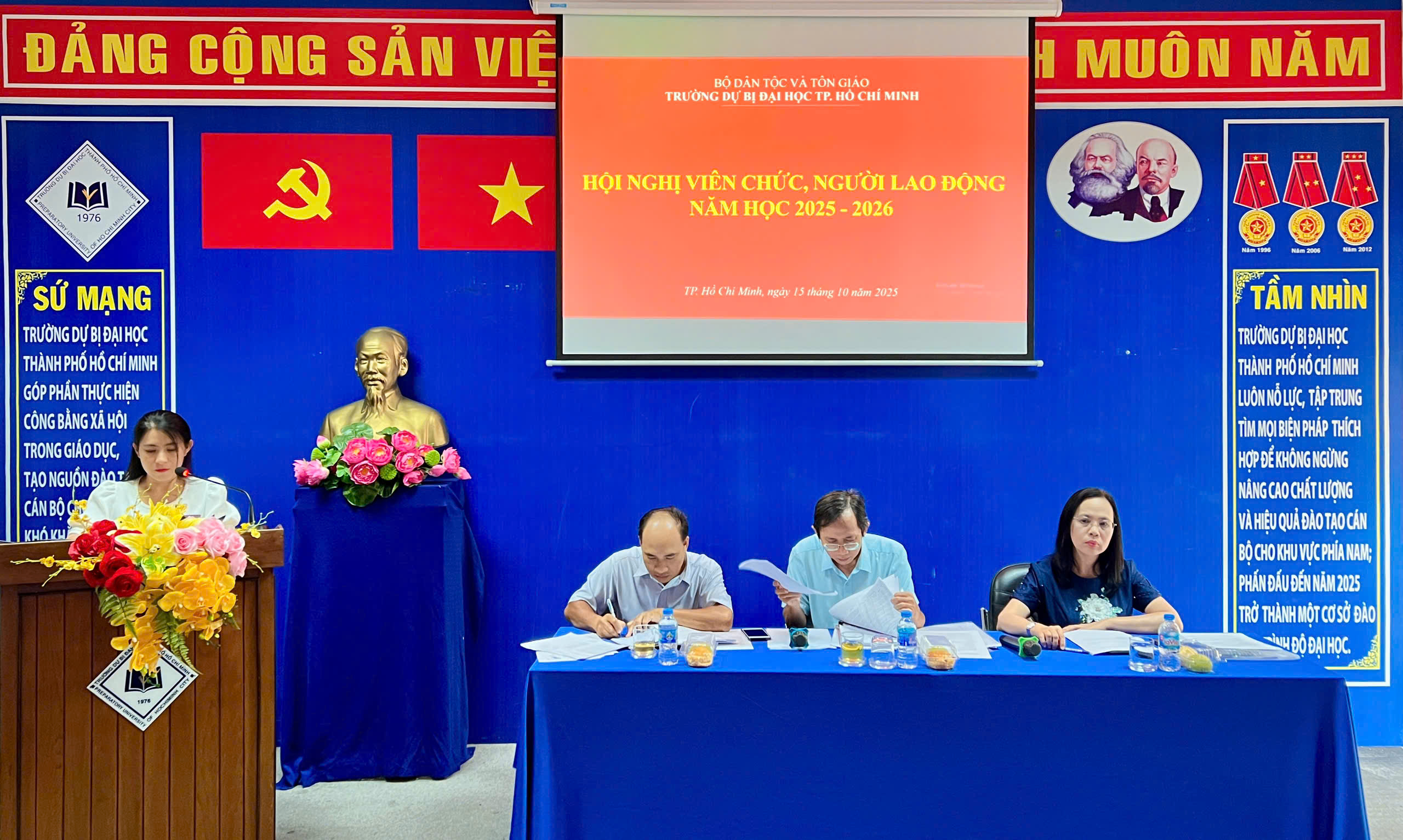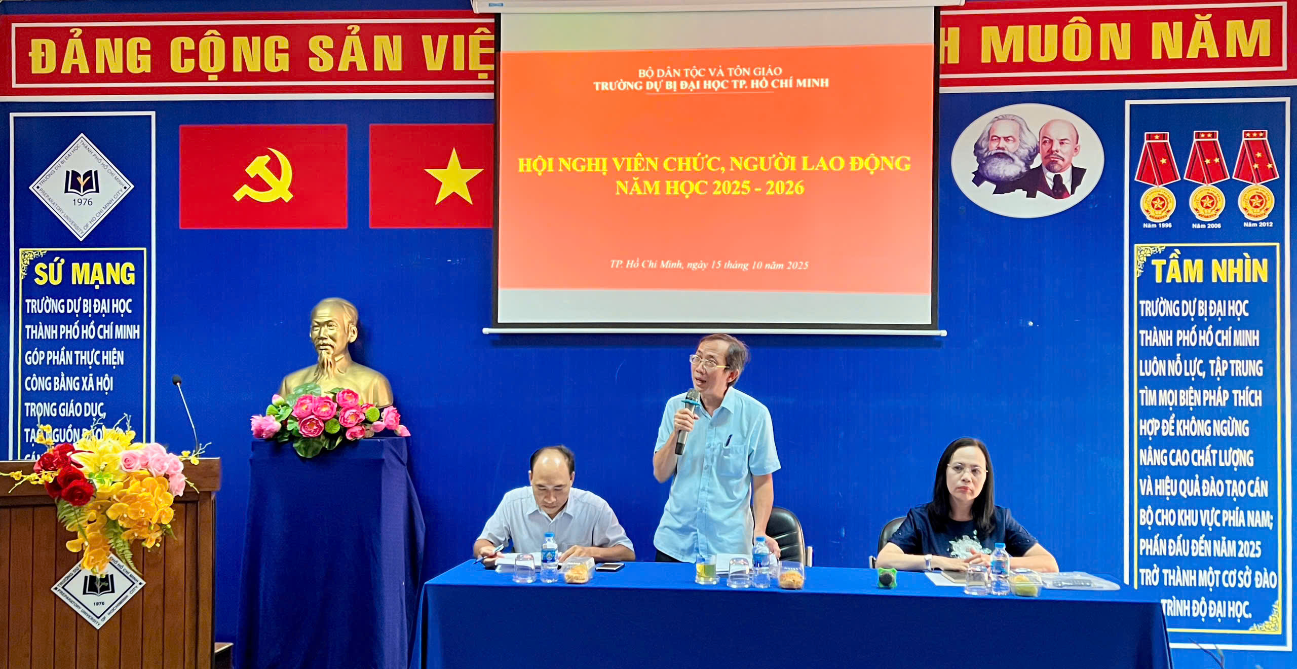 Ngày 15/10/2025, Trường Dự bị Đại học TP. Hồ Chí Minh tổ chức Hội nghị viên chức, người lao động năm học 2025 – 2026 với sự tham dự của Ban Giám hiệu, Trưởng, phó các đơn vị và toàn thể viên chức, người lao động Nhà trường.