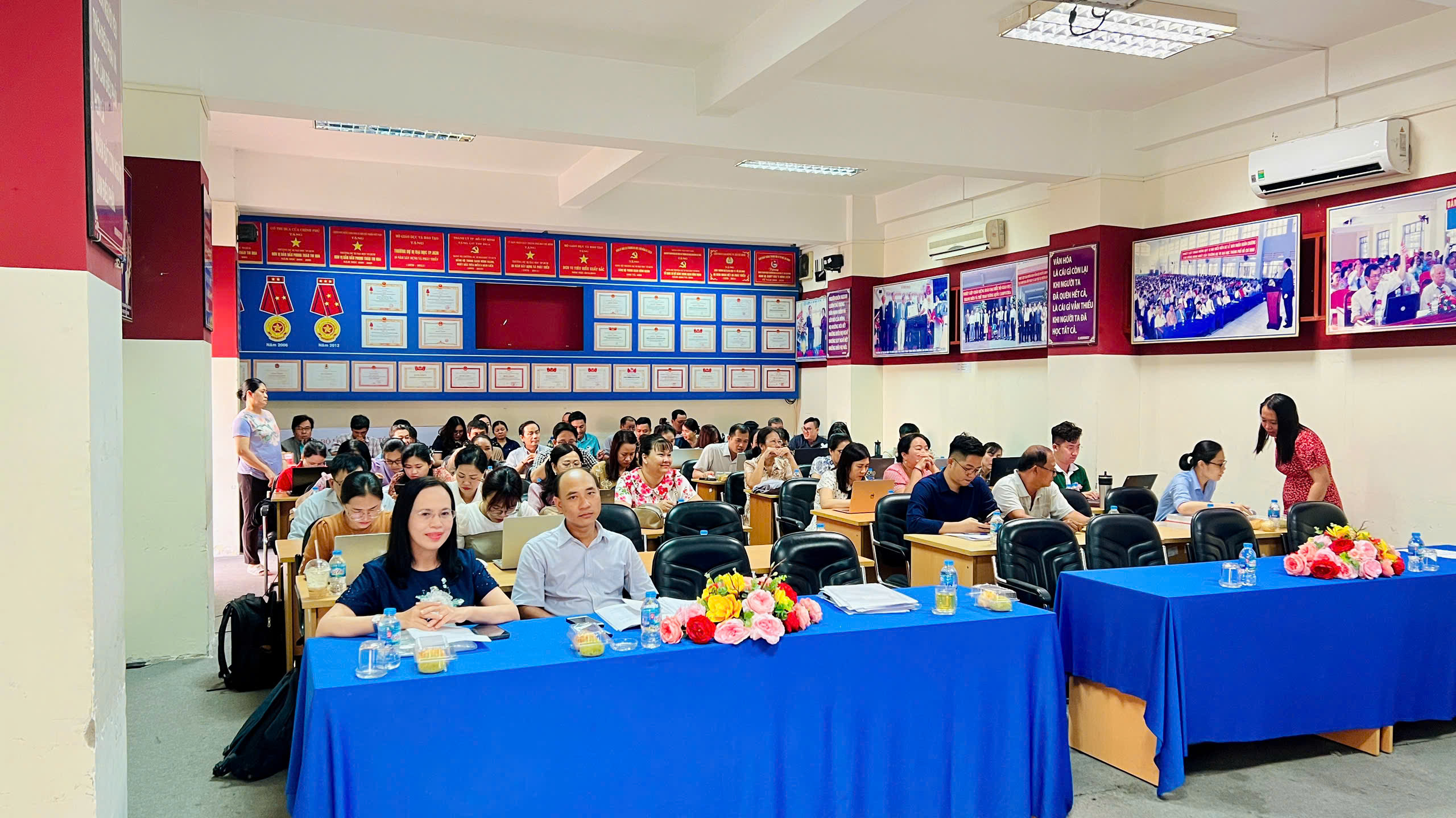 Nhằm ghi nhận những nỗ lực, đóng góp của tập thể, cá nhân trong công tác tiếp nhận và phục vụ học sinh đầu năm học 2025 – 2026, Nhà trường đã khen thưởng các tập thể và cá nhân có thành tích tiêu biểu, góp phần tạo nên không khí thi đua sôi nổi ngay từ những ngày đầu năm học.