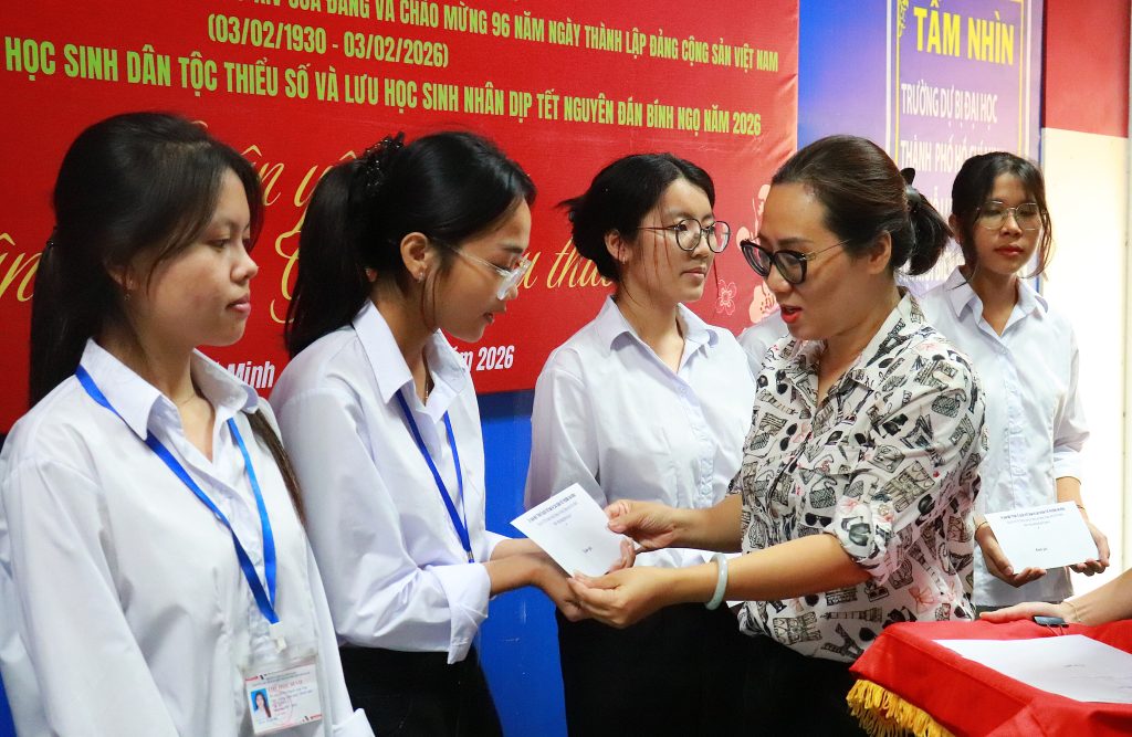 Năm học 2025 – 2026 hơn 120 đoàn viên, thanh niên có hoàn cảnh khó khăn đang học tập và sinh hoạt tại Trường cần sự chung tay giúp đỡ. Qua đó, Quỹ học bổng đã trao 128 phần quà Tết cho đoàn viên, thanh niên và lưu học sinh vui xuân, đón Tết cổ truyền đầm ấm, hạnh phúc. Mỗi phần quà Tết, học bổng từ 300.000đ đến 1.000.0000 đồng.
