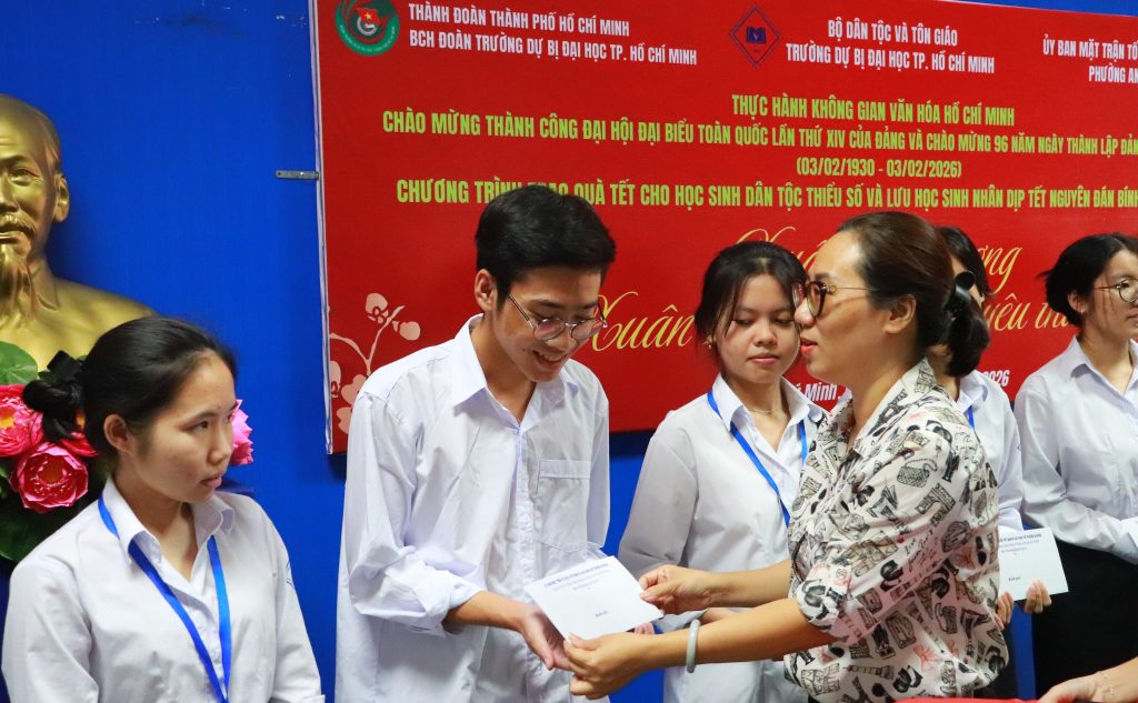 Tiếp nối thành công của chương trình những năm qua, chiều ngày 28/01/2026, Ban Chấp hành Đoàn trường Dự bị Đại học TP. Hồ Chí Minh tổ chức chương trình Xuân yêu thương và Trao quà Tết cho đoàn viên,thanh niên dân tộc thiểu số có hoàn cảnh khó khăn và lưu học sinh nhân dịp Tết Nguyên đán Bính Ngọ năm 2026 với chủ đề: “Xuân 2026 – Gắn kết yêu thương”.