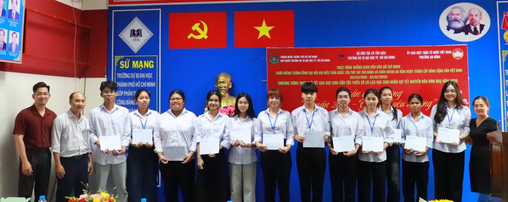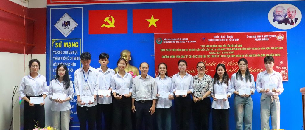 Chương trình “Xuân 2026 – Gắn kết yêu thương” với mong muốn chăm lo, động viên, giúp đỡ vật chất và tinh thần cho các đoàn viên, thanh niên và lưu học sinh rèn luyện, ra sức thi đua học tập tốt. Ban Chấp hành Đoàn trường – Ban vận động Quỹ học bổng đã kêu gọi Quý Thầy/ Cô viên chức, người lao động và các nhà hảo tâm, các đơn vị, Ban ngành địa phương, …. tham gia đóng góp, hỗ trợ cho Quỹ học bổng “Dự bị Đại học TP. Hồ Chí Minh – Gắn kết yêu thương” để có nguồn lực xét trao quà Tết cho đoàn viên, thanh niên các lớp dự bị đại học khóa K36 có hoàn cảnh khó khăn đạt thành tích học tập tốt được vui xuân, đón Tết cổ truyền đầm ấm, hạnh phúc.