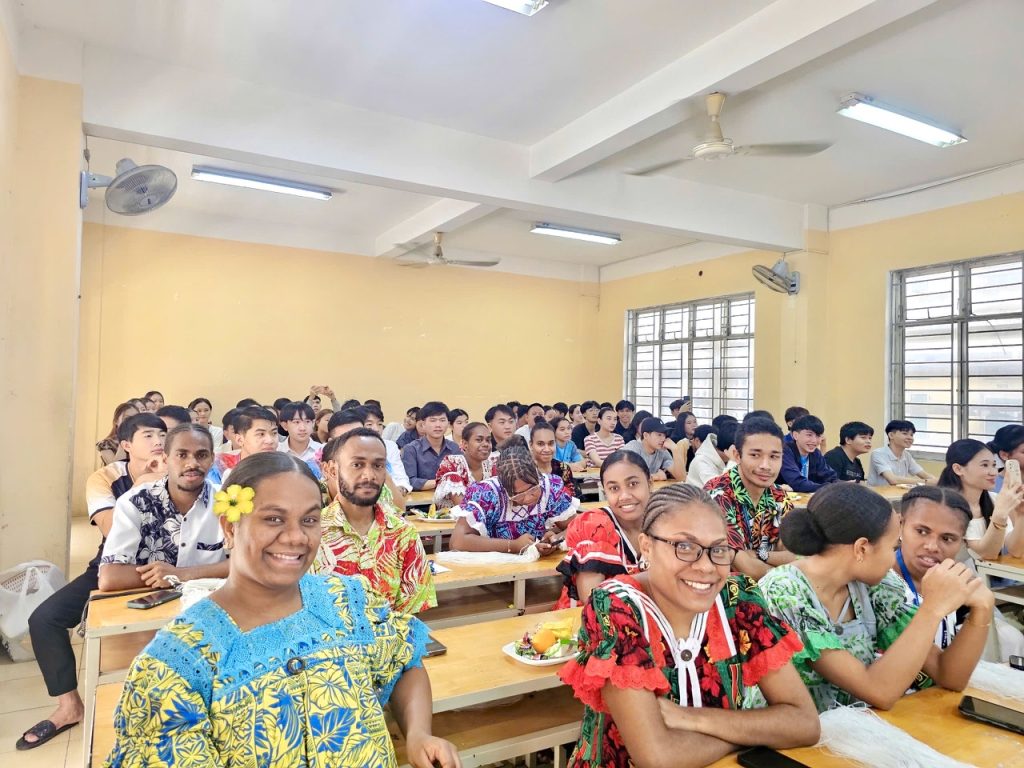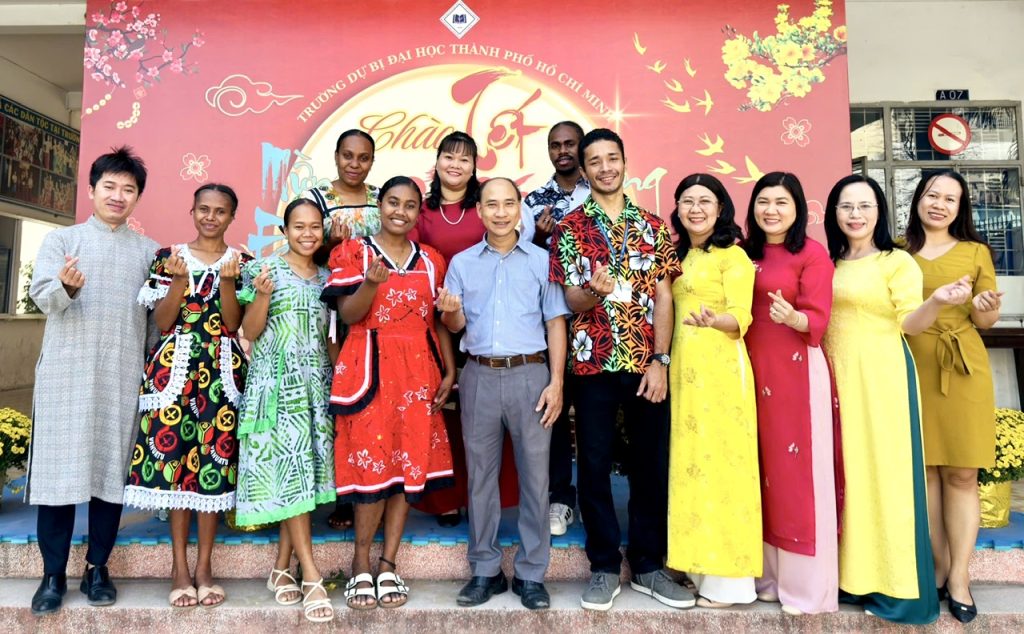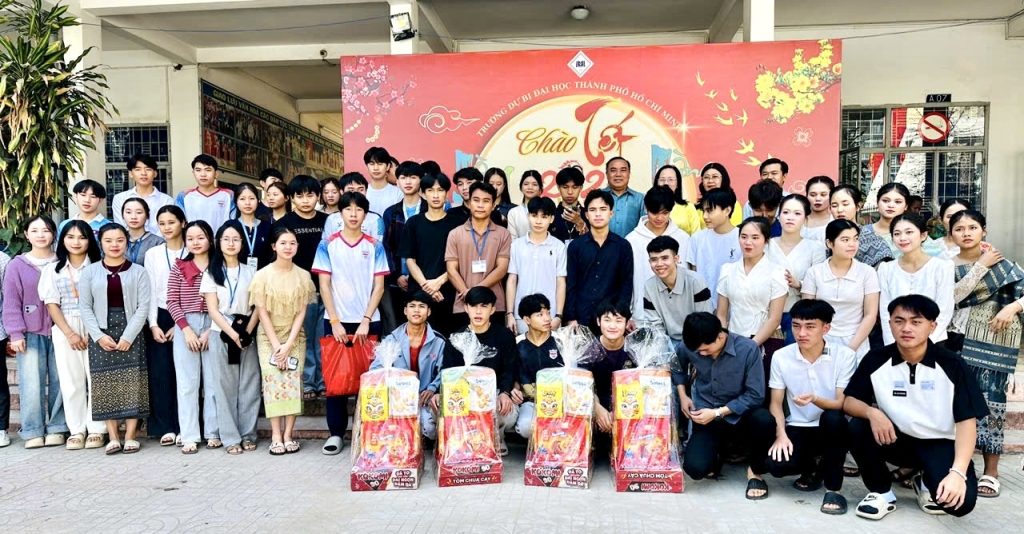Hiểu được điều đó, vào ngày 09/02/2026, Trường Dự bị đại học Thành phố Hồ Chí Minh đã tổ chức buổi họp mặt trao quà Tết cho các lưu học sinh đang học Tiếng Việt tại trường. Trong không khí ấm áp của những ngày đầu Xuân mới, nhà trường vinh dự được đón tiếp ông Longphan Phaođavanh, lãnh sự Tổng lãnh sự nước Cộng hòa Dân chủ Nhân dân Lào tại Thành phố Hồ Chí Minh; Ông Chan Sorykan, Tổng lãnh sự Vương Quốc Campuchia tại Thành phố Hồ Chí Minh cùng sự có mặt của hơn 100 lưu học sinh Lào, Campuchia và Vanuatu. Đó không chỉ là một “không gian Tết” ấm áp để các em cảm nhận được sự quan tâm, gắn kết, mà còn giúp lưu học sinh có cơ hội sẻ chia, kết nối, hiểu biết thêm về những nét văn hóa đặc sắc trong ngày Tết cổ truyền của người Việt Nam.
