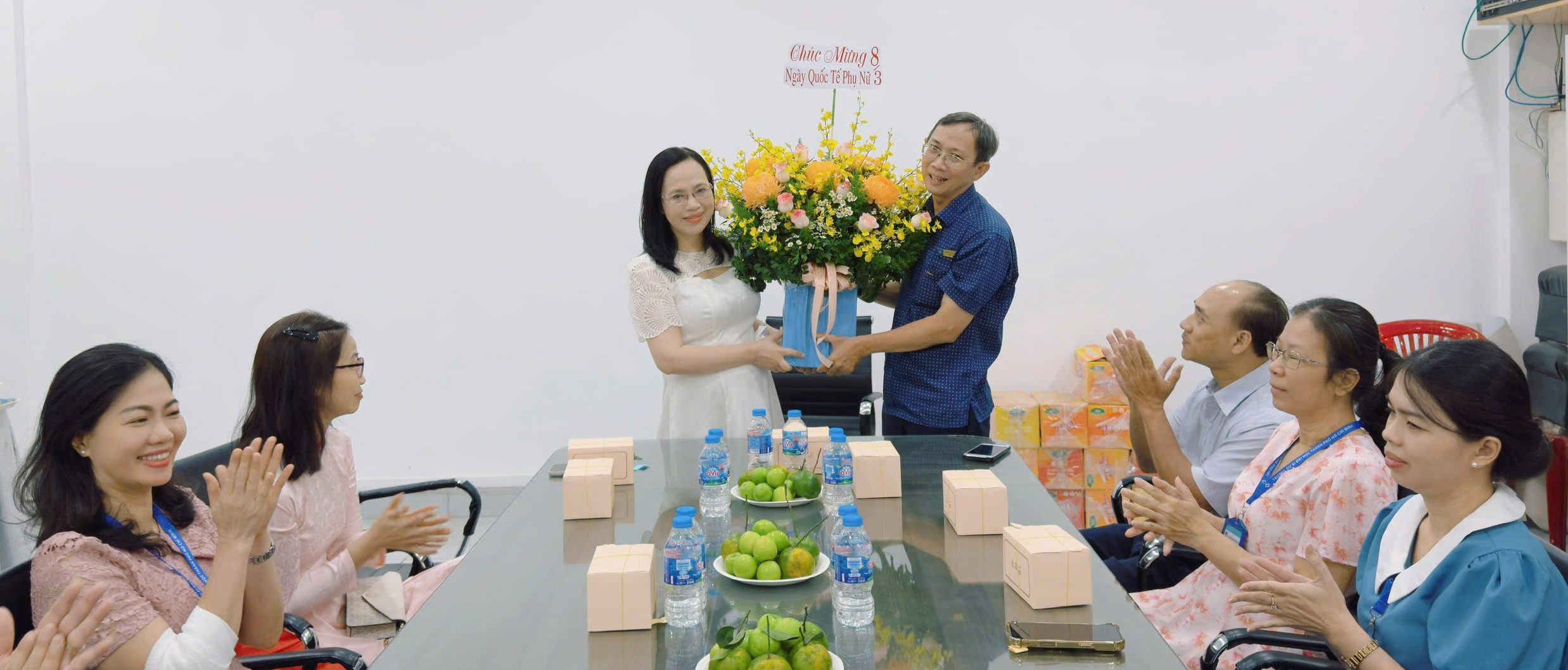 Phát biểu tại buổi họp mặt, Thầy Lê Hữu Thức – Hiệu trưởng nhà trường đã ôn lại truyền thống, ý nghĩa lịch sử của Ngày Quốc tế Phụ nữ 8/3, đồng thời ghi nhận và biểu dương những đóng góp quan trọng của đội ngũ nữ viên chức, người lao động trong sự phát triển chung của nhà trường. Nhân dịp này, Thầy gửi những lời chúc tốt đẹp đến toàn thể nữ viên chức, người lao động của Trường, chúc các cô, các chị luôn mạnh khỏe, hạnh phúc và thành công trong công việc cũng như trong cuộc sống.